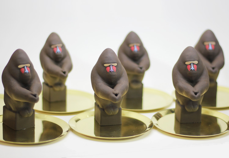 메탈 트레이와 유인원 도자 오브제가 결합한 구성이며 위트있는 형태로 즐거움을 선사합니다.