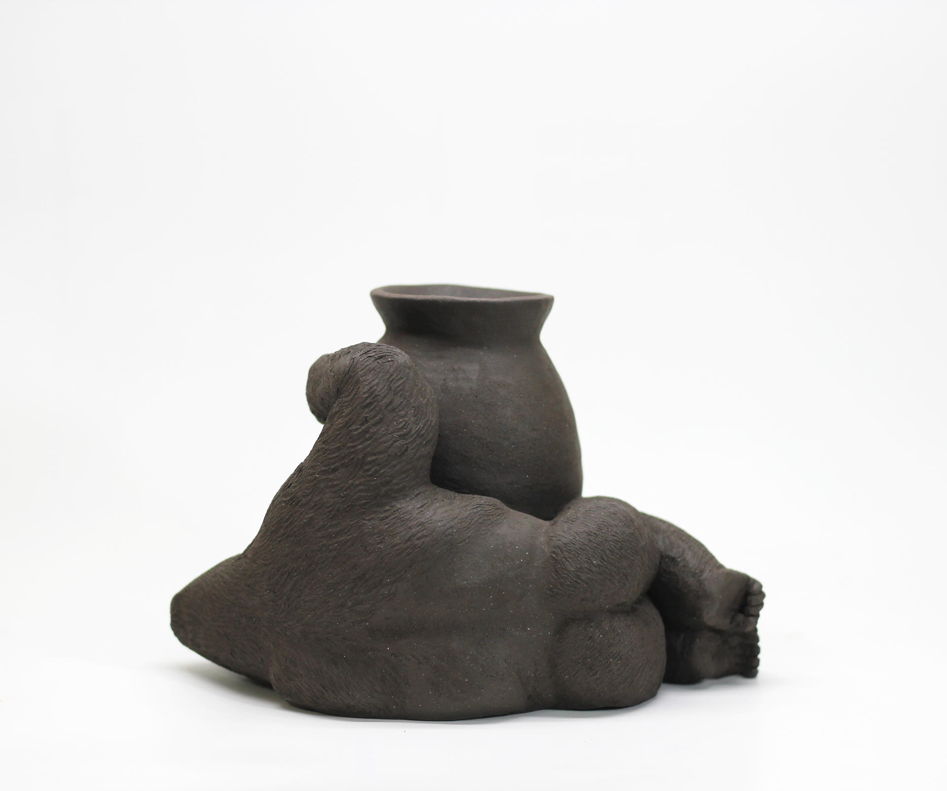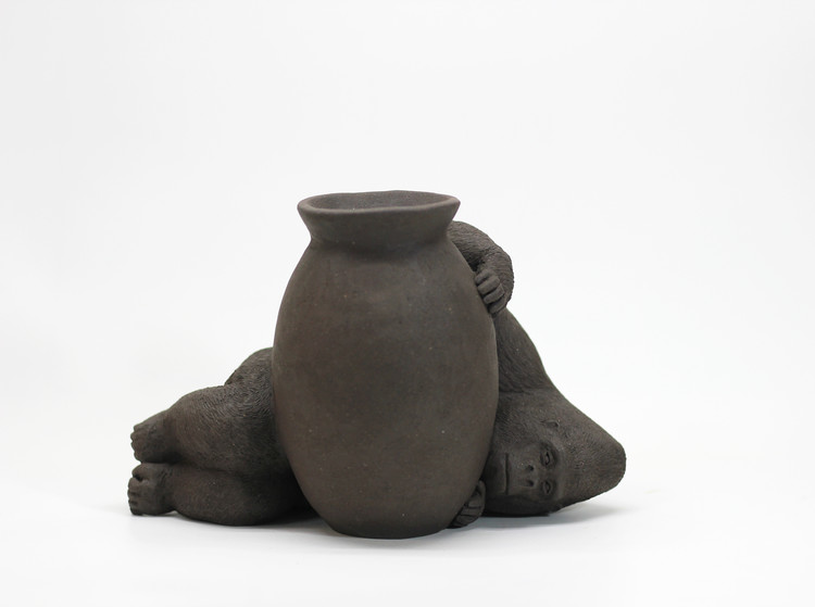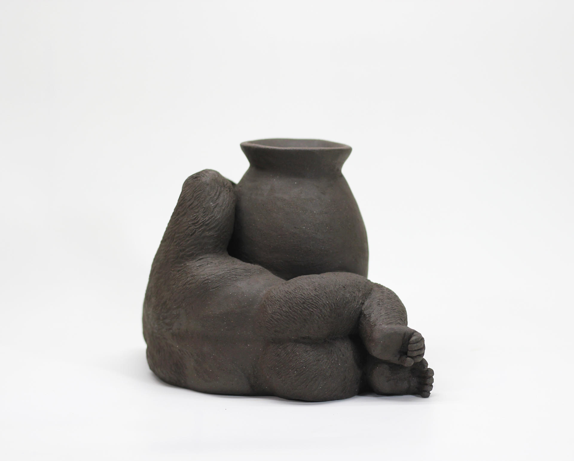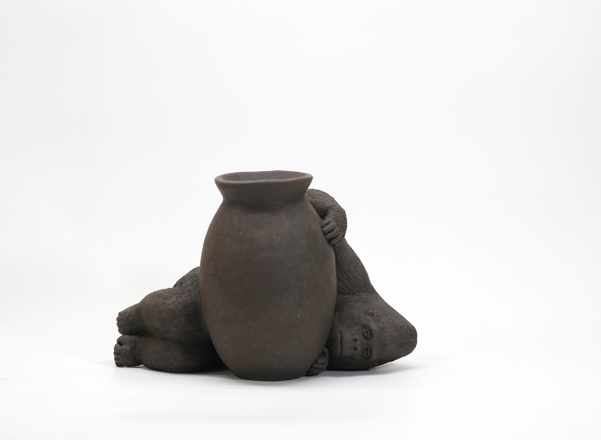 The artist has always dealt with clay as a sculptor, and this time, she grafted terra cotta molding and practical pottery. This series can be roughly divided into two groups. One is a group of animal-shaped vases, and the other of more serious pieces which Park has been working on portraying silverback lowland gorillas with a variety of intriguing poses.
