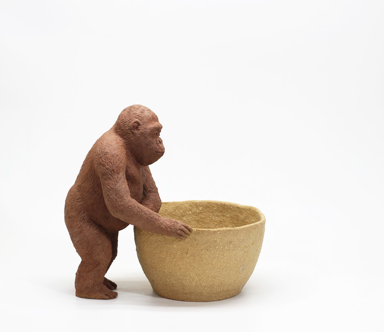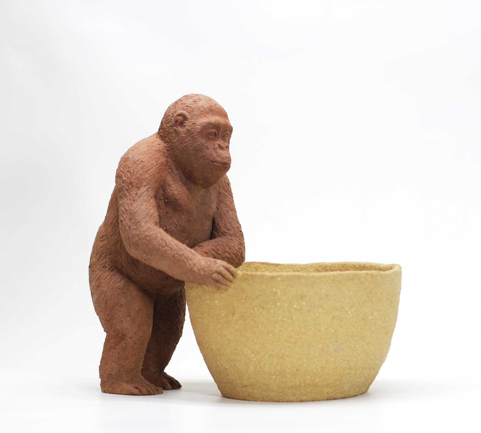 소조적 방식으로 표현된 사실적 고릴라 형상을 불에 구워 고정시키는 것은 까마득한 과거에 원초적 인류가 토우를 만들어내었던 그 행위와 맥을 같이한다.