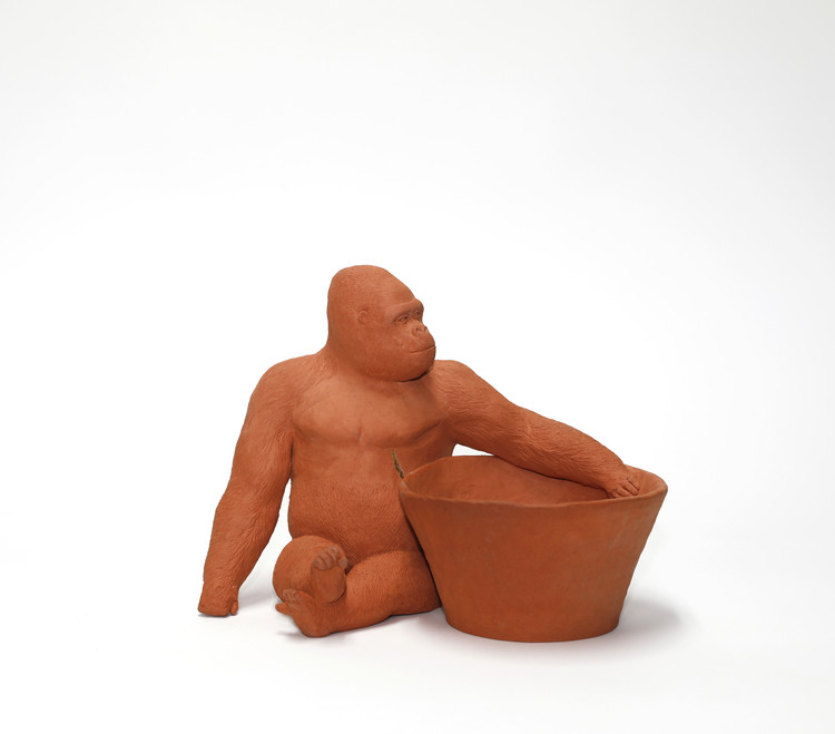 The artist has always dealt with clay as a sculptor, and this time, she grafted terra cotta molding and practical pottery. This series can be roughly divided into two groups. One is a group of animal-shaped vases, and the other of more serious pieces which Park has been working on portraying silverback lowland gorillas with a variety of intriguing poses.
