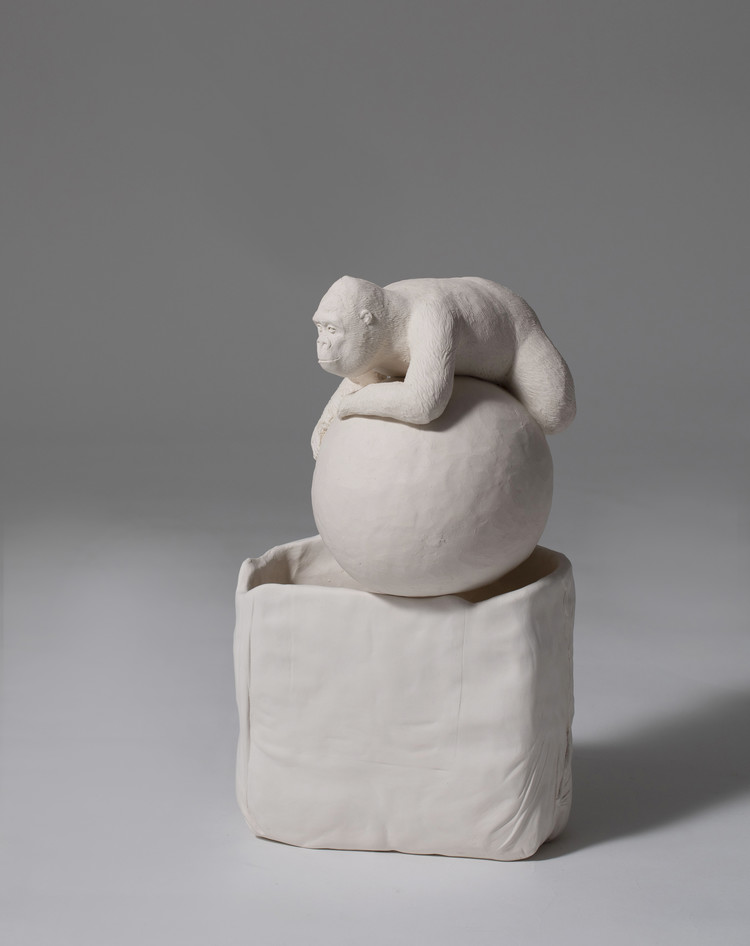 소조적 방식으로 표현된 사실적 고릴라 형상을 불에 구워 고정시키는 것은 까마득한 과거에 원초적 인류가 토우를 만들어내었던 그 행위와 맥을 같이한다.
